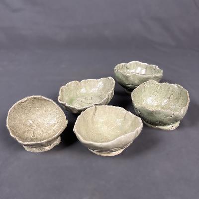 Set de saleros. Cerámica de alta temperatura color verde. Diferentes diseños y tamaños.
