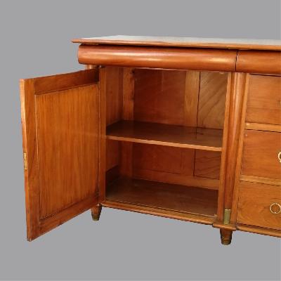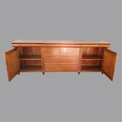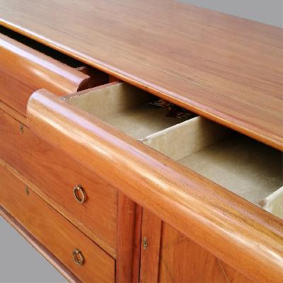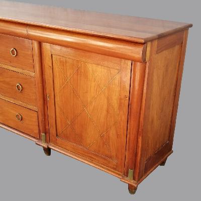 Credenza en madera de cedro rojo con 3 cajones, 2 puertas laterales e incrustaciones de latón.