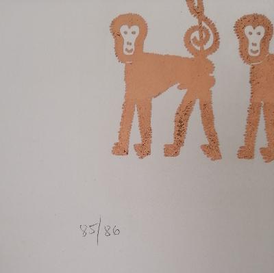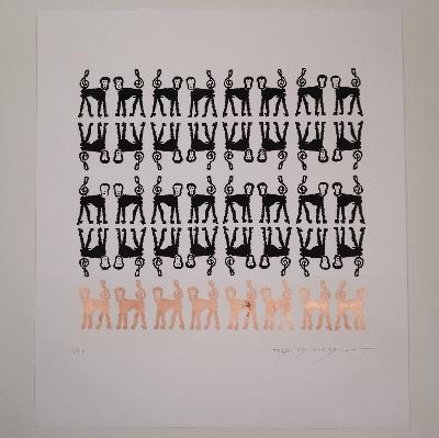 Pedro Friedeberg. Monos Musicales de Día. Grabado y hoja de cobre.