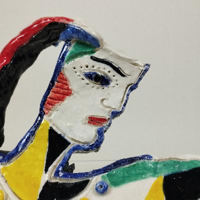El soldado. Escultura de cerámica policromada. Firmada con monograma.
