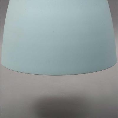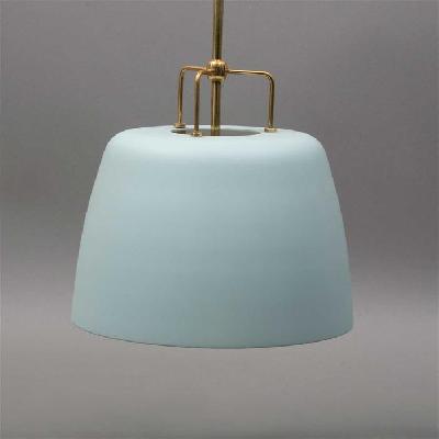 Lámpara de techo. Metal laqueado color azul turquesa. Para 1 luz. Diseño en forma de campana con interior blanco y soportes de latón.