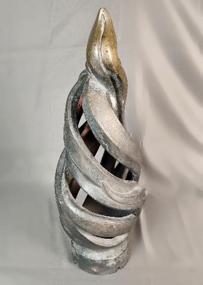 Pantalla para lámpara de mesa. Bronce. Diseño en forma de flama.