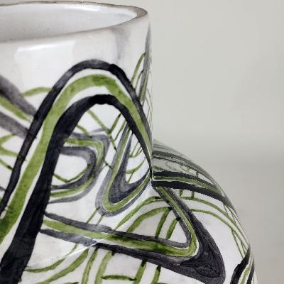 Jarrón. Cerámica de Cuernavaca. Decoración en forma de líneas en colores verde y negro. Firmado y fechado 2009.