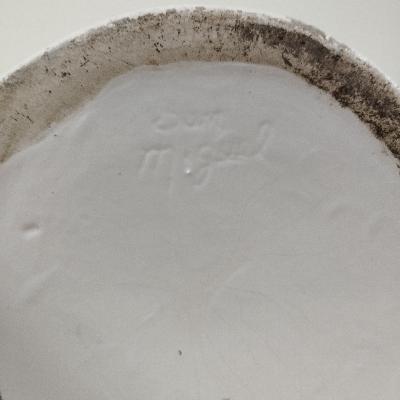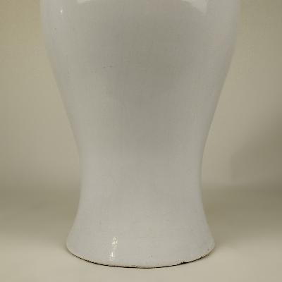 Jarrón. Cerámica blanca. Diseño abombado superior con boca angosta.
