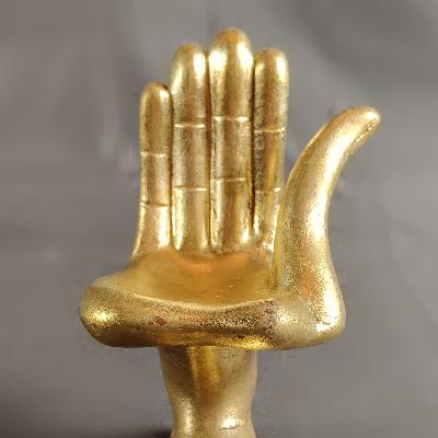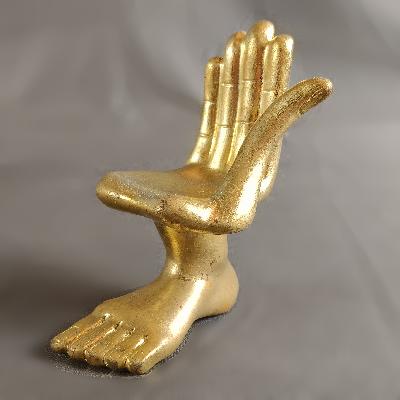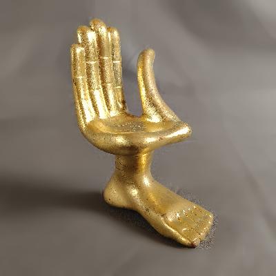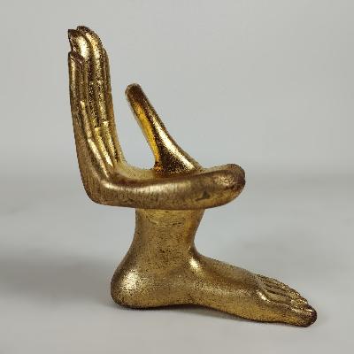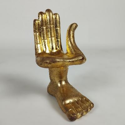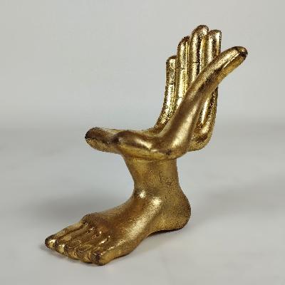 Mano - pie derecha. Resina con acabado de oro bruñido. Firmada en base.