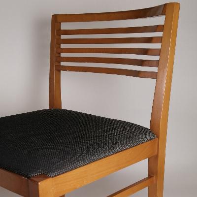 Par de sillas Ricchio, años 90. Madera de haya. Respaldo escalonado y asiento en tapicería negra.