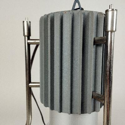 Par de lámparas de techo, años 70. Aluminio pulido. Para 1 luz. Diseño cónico con pantalla inferior de vidrio esmerilado.