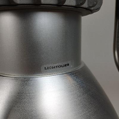 Lightolier. Par de lámparas de techo en aluminio pulido y vidrio