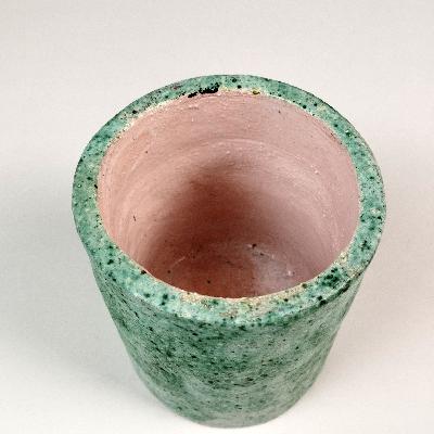 Florero. Cerámica de alta temperatura verde. Diseño cilíndrico.