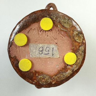 Más informaciónMaría Teresa Espriu. Jarrón. Cerámica de alta temperatura café. Diseño cilíndrico con dos asas lateral muy pequeñas.