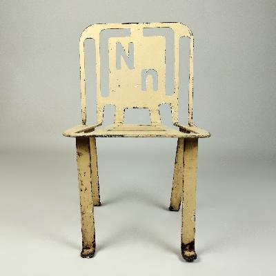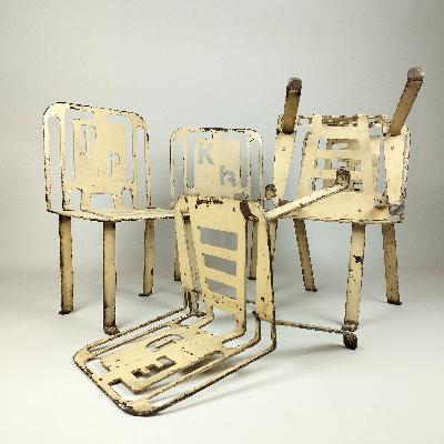 Par de sillas. México, años 80. Diseño Pedro Ramírez Vázquez. Acero laqueado y troquelado. Diferentes diseños.