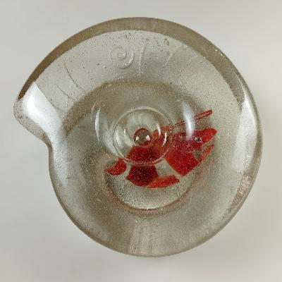 Más informaciónPar de portalibros. Cristal prensado. Diseño en forma de caracolas con detalles en colores rojo y ámbar.