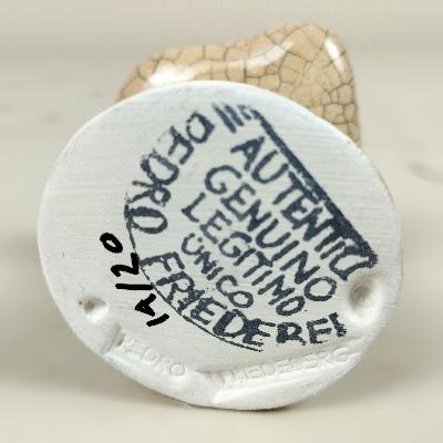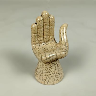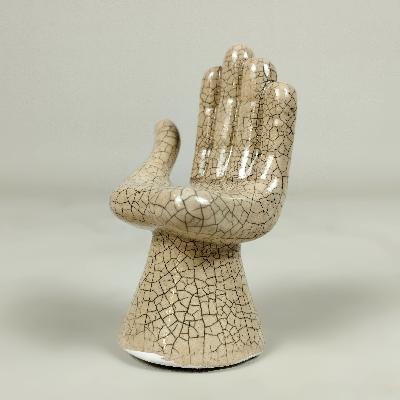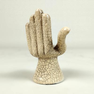 Pedro Friedeberg. Mano-campana mediana craquelada color arena. Cerámica. 16cm P/U