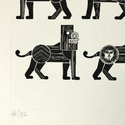 Leones de día. Grabado. Serie de 86. Firmada.