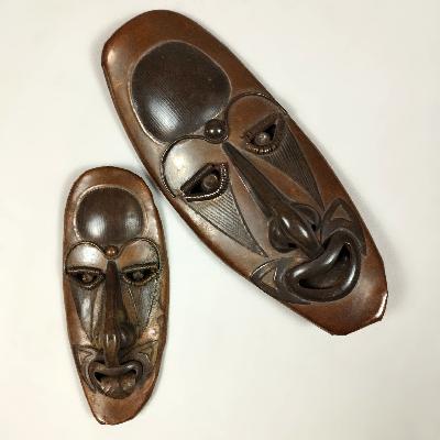 Set de 2 máscaras estilo africano en lámina de cobre