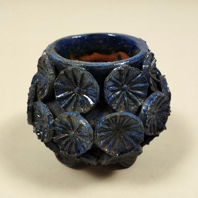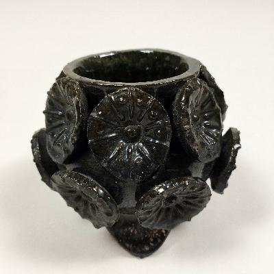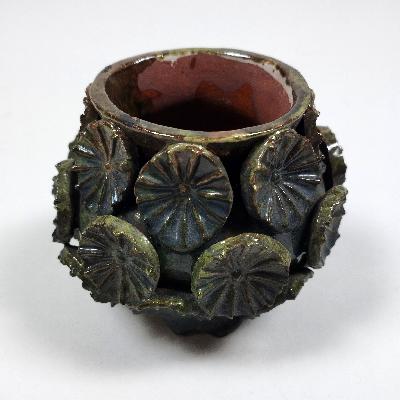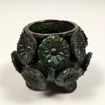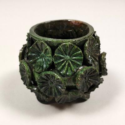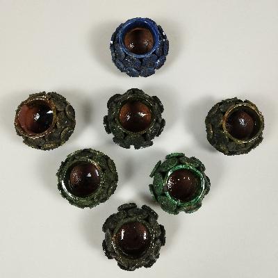 Juego de 7 vasijas. San José de Gracia, Michoacán, años 50. Barro verde. Diseño con rosetones.