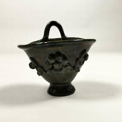 Juego de 5 jarritos. San José de Gracia, Michoacán, años 50. Barro verde. Diferentes diseños y tamaños.
