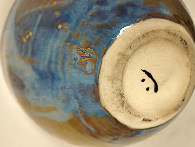 Tazón. Cerámica de alta temperatura color azul y ocre. Diseño redondo.