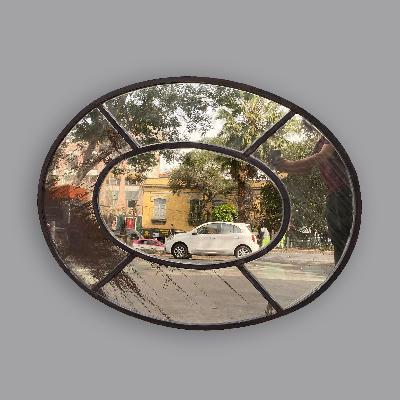 Espejo oval. Marco de acero. Diseño oval ojo de buey con 5 lunas antiguas.